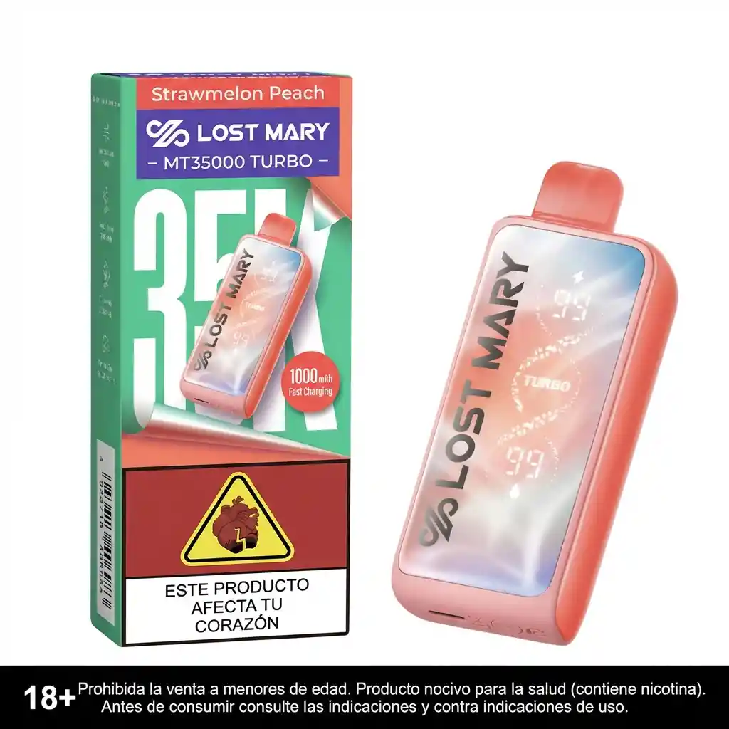FRESA, SANDIA Y DURAZNO.. Modo Turbo o Modo normal, 35.000 Puffs, con indicador de esencia y de bateria, puerto de carga tipo C.