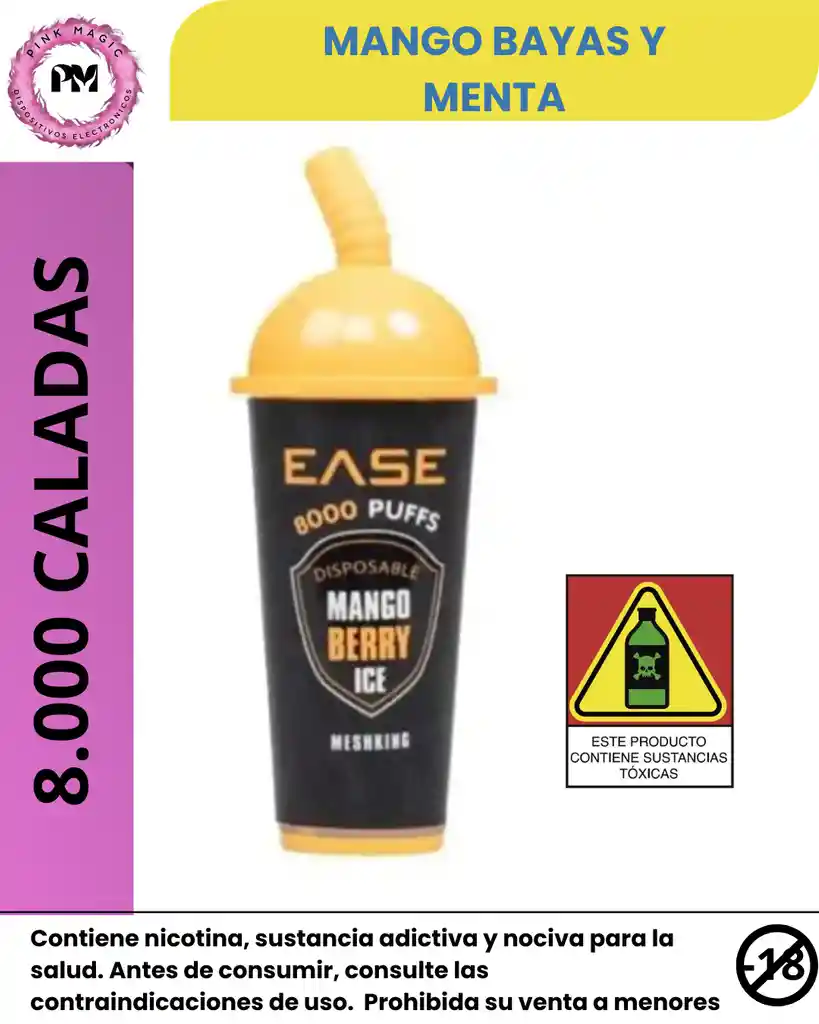 El vaporizador Snowwolf Ease con sabor Mango Berry Ice es un dispositivo desechable de alto rendimiento que ofrece una mezcla de mango maduro, bayas mixtas y un final de mentol refrescante. Este modelo destaca por su gran capacidad, proporcionando hasta 8,000 caladas