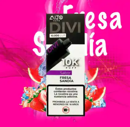 Conoce nuestro nuevo dispositivo desechable DIVI 10.000 puff, integra una pantalla digital que te permitirá visualizar el porcentaje de carga de tu batería e identificarás el porcentaje de líquido restante. Características 50 mg/ml. Capacidad de batería: 650mHa. 18ml de capacidad de líquido. Ligero y práctico.