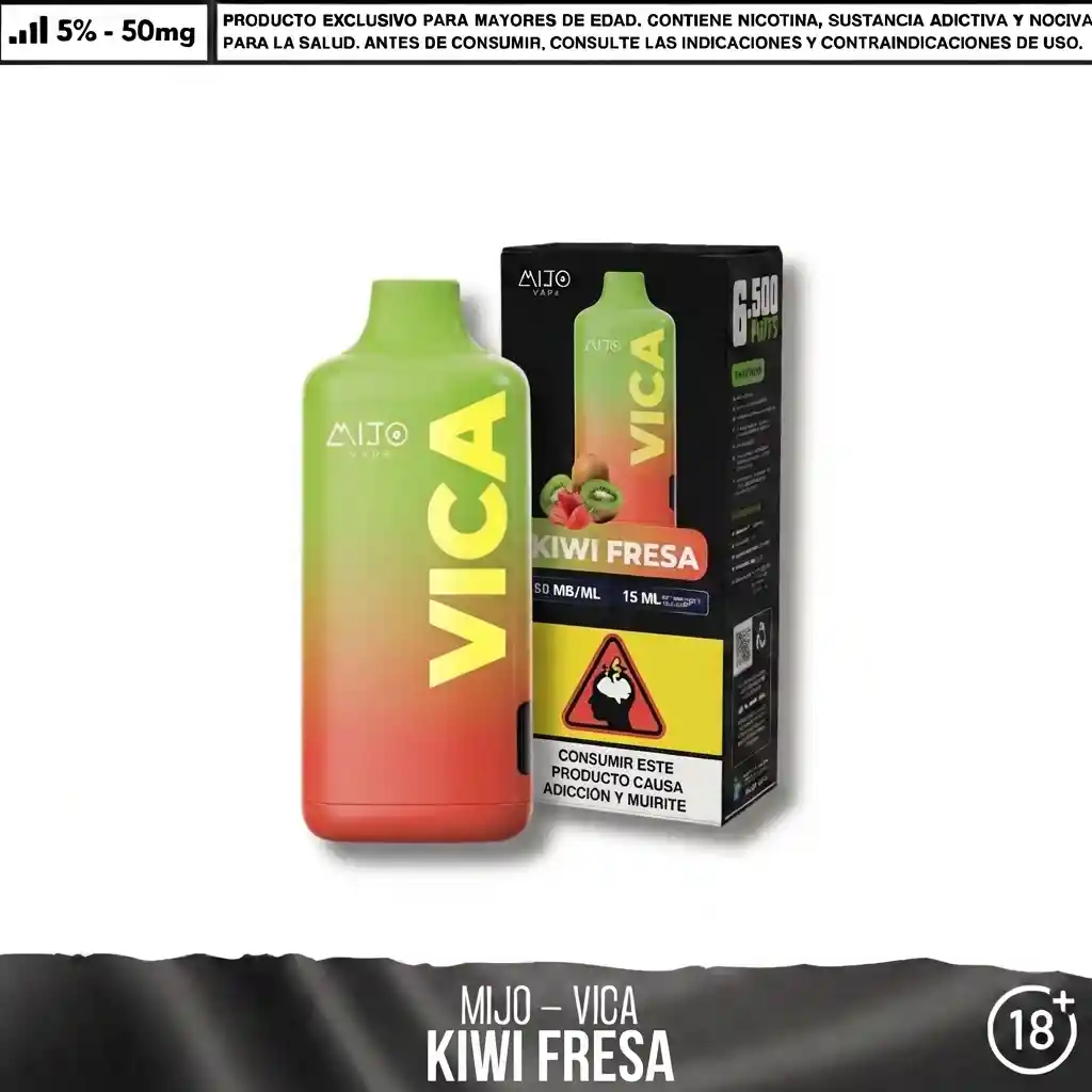 Vaporizador Mijo Vica 6500 puffs recargable, cuenta con medidor de esencia y bateria.