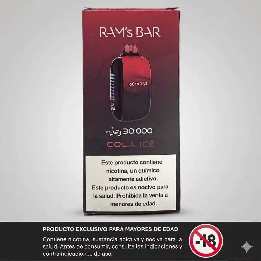 . 🥤 Rams Bar 30,000 Puffs: ¡El sabor clásico llevado al extremo! COLA ICE ❄️ Es uno de los dispositivos más potentes y duraderos del mercado actual. ¿Buscas duración infinita y un sabor inigualable? El nuevo Rams Bar Cola Ice te ofrece una experiencia refrescante de principio a fin. Disfruta del burbujeante sabor de la cola con un golpe de frío intenso que te acompañará por semanas. Capacidad Gigante: Hasta 30,000 caladas reales. Pantalla Ultra Inteligente: Monitorea el nivel de líquido y batería para que nunca te quedes a medias. Modo Boost: Intensifica el sabor y el vapor con un solo toque. Carga Rápida: Puerto Tipo-C para que sigas vapeando sin esperas.