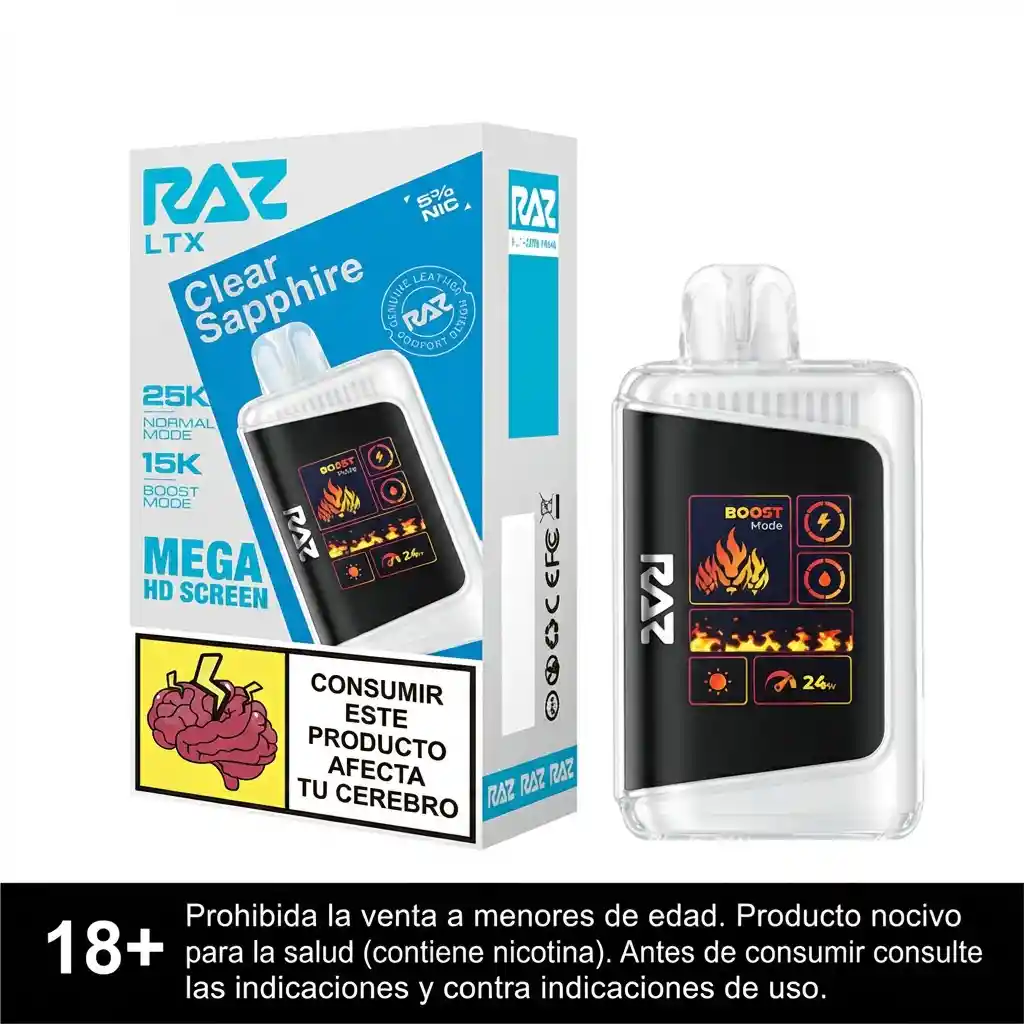 Vaporizador desechable. CON 2 MODOS DE POTENCIA. Pantalla con indicador de bateria y esencia. Contiene 1 unidad con bateria recargable, recargado hasta con 25.000 puffs en modo regular y 15.000 puffs en modo Pulse. Nicotina 5% . Producto exclusivo para mayores de edad, contiene nicotina, la nicotina es adictiva.