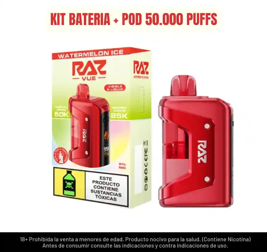 SANDIA MENTOLADO - Kit Raz bateria y pod de 50.000 puffs, bateria reutilizable. 5% nicotina prohibida su venta a menores de edad.
