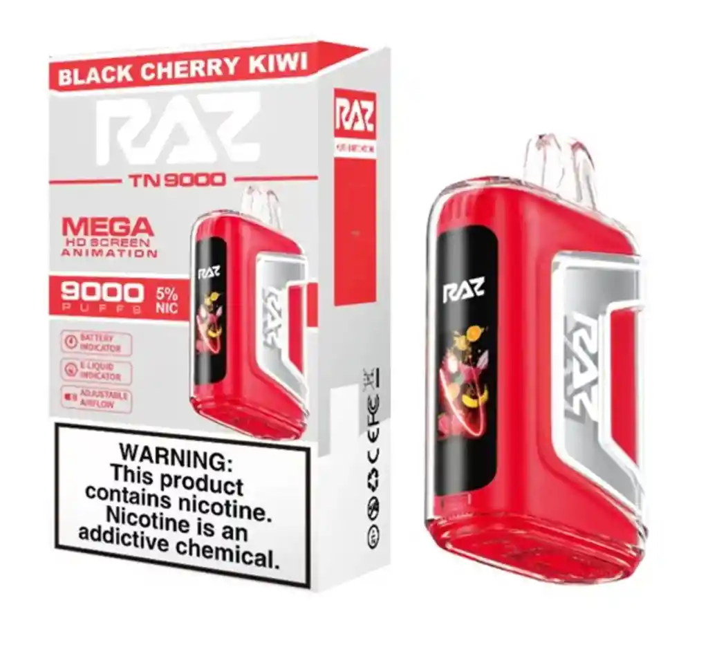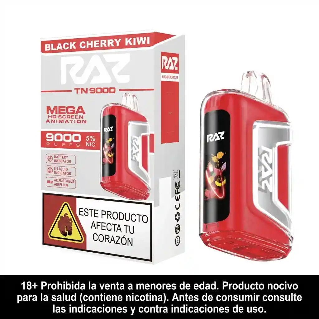 CEREZA NEGRA Y KIWI. Descubre la experiencia definitiva de vapeo con el vaporizador desechable RAZ TN9000. Este dispositivo ofrece una gran variedad de funciones para una sesión de vapeo satisfactoria y sin complicaciones.