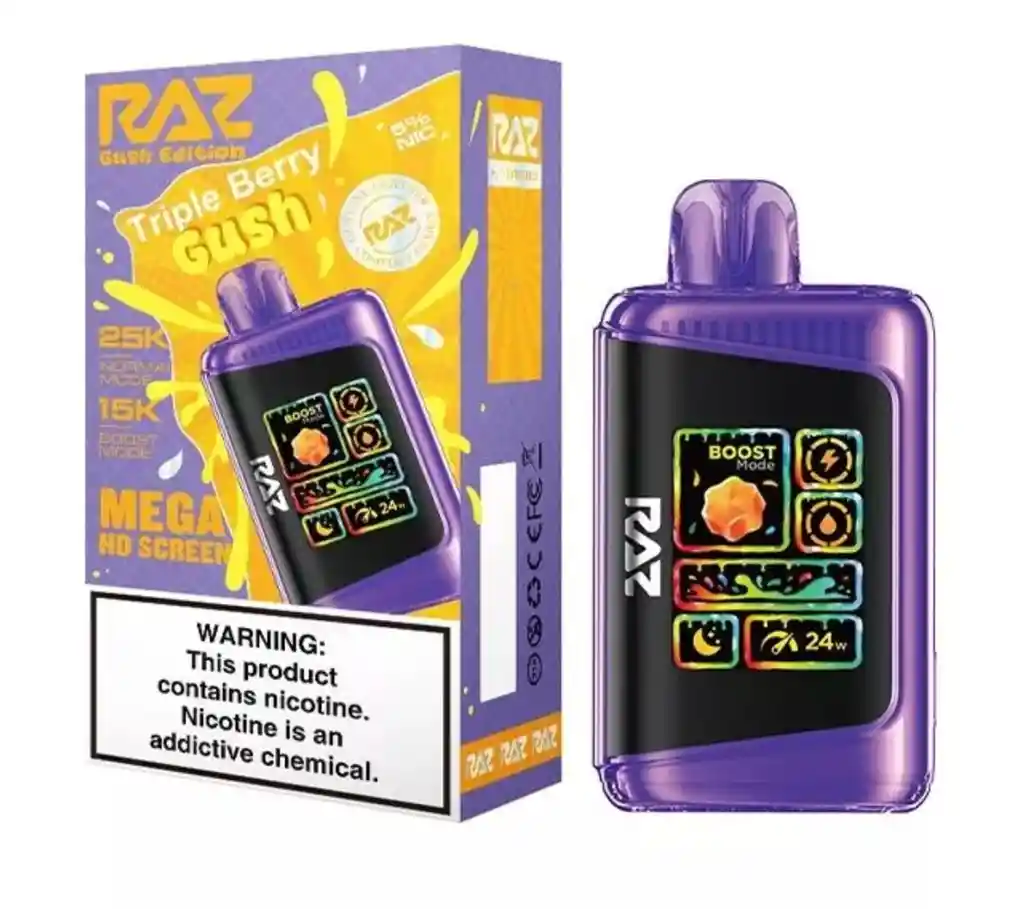FRUTOS MORADOS. Vaporizador desechable. CON 2 MODOS DE POTENCIA. Pantalla con indicador de bateria y esencia. Contiene 1 unidad con bateria recargable, recargado hasta con 25.000 puffs en modo regular y 15.000 puffs en modo Pulse. Nicotina 5% . Producto exclusivo para mayores de edad, contiene nicotina, la nicotina es adictiva.