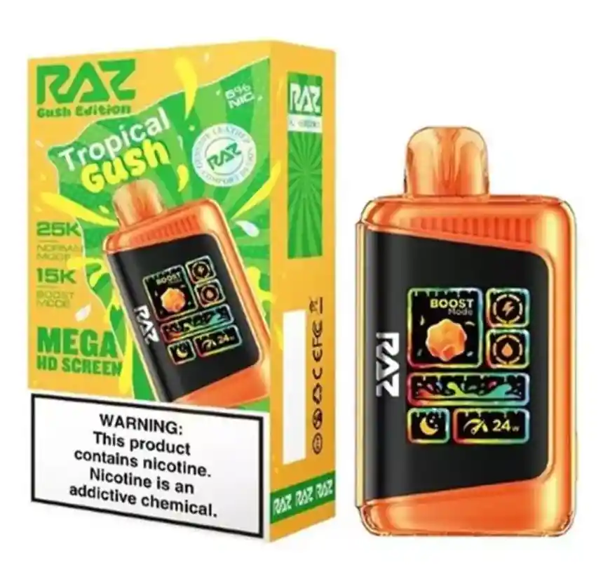 REFRESCANTES FRUTAS TROPICALES. Vaporizador desechable. CON 2 MODOS DE POTENCIA. Pantalla con indicador de bateria y esencia. Contiene 1 unidad con bateria recargable, recargado hasta con 25.000 puffs en modo regular y 15.000 puffs en modo Pulse. Nicotina 5% . Producto exclusivo para mayores de edad, contiene nicotina, la nicotina es adictiva.