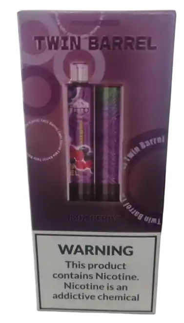 TWIN BARREL: Vaporizador desechable con sales de nicotina precargadas, pensado para usuarios que quieren una experiencia de vapeo. Hasta ~8000 caladas de vapor. E-líquido prellenado: alrededor de 17 mL con salts de nicotina al ~5 % (50 mg). Batería recargable: batería interna (~500 mAh) que se carga por USB-C. Activación por inhalación.