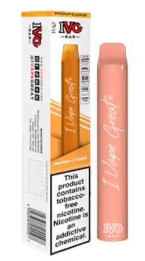 Características: 8ml Salt Nic Batería de 1250 mAh 5% de sal de nicotina Hasta 3000 bocanadas Diseño compacto con estilo Contenido del paquete: 1x IVG Max Bar 3000 Puff Desechable Prohibida la venta a menores de edad. Producto nocivo para la salud que contiene nicotina, sustancia altamente adictiva. Antes de consumir consulte las indicaciones y contraindicaciones de uso