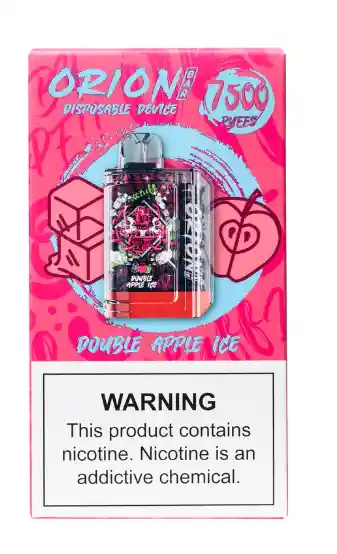 Caracteristicas: Es un equilibrio perfecto de manzana ácida, manzana fuji y hielo. Es el mejor sabor de manzana entregado por un dispositivo de primera clase. Cada Vape Orion cuenta con flujo de aire ajustable y una batería recargable. El Vape Orion tiene un diseño artístico distintivo en cada dispositivo. 1 dispositivo recargable de 7500 puff Con 5% nicotina E-liquid de 18ml Batería recargable 650mAh Prohibida la venta a menores de edad. Producto nocivo para la salud que contiene nicotina, sustancia altamente adictiva. Antes de consumir consulte las indicaciones y contraindicaciones de uso