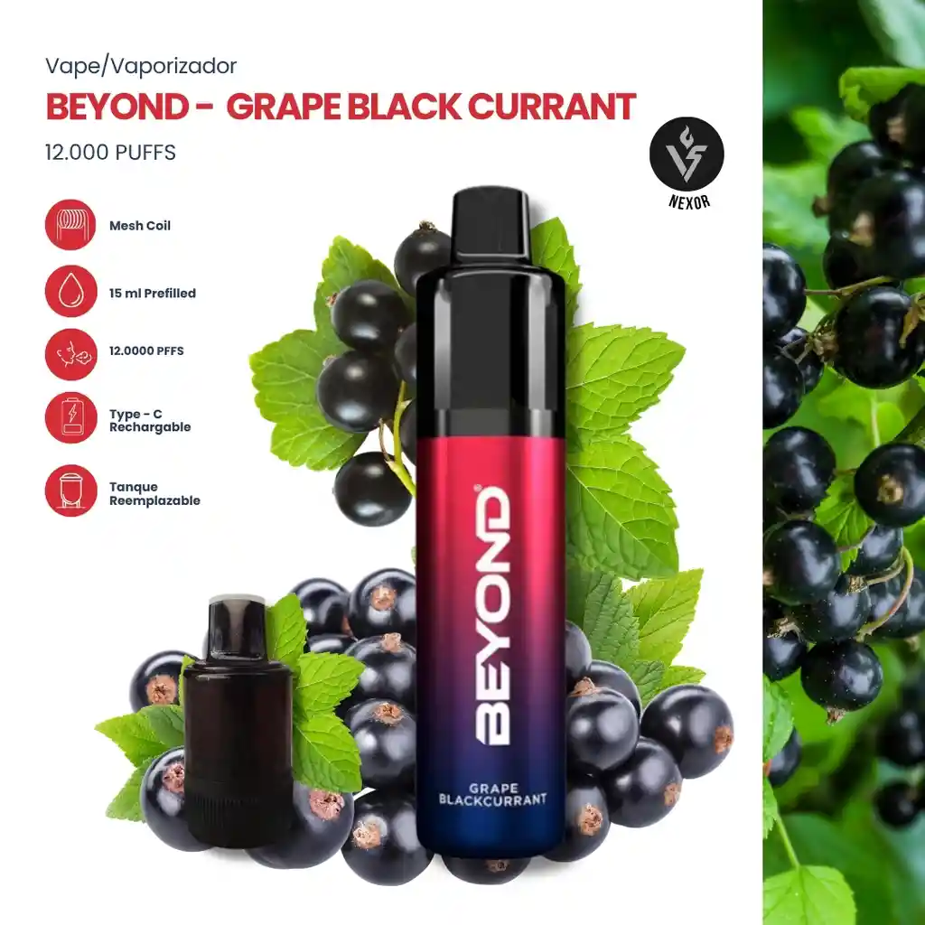 Una mezcla profunda de uva dulce con el toque ligeramente ácido de frutos oscuros, creando un perfil intenso, elegante y muy jugoso. Un sabor envolvente que destaca por su equilibrio entre dulzura y carácter. Características principales • Hasta 12,000 puffs en total (6000 + 6000 del tanque adicional) • Batería recargable • Puerto de carga Tipo C (rápido y práctico) • Sistema con tanque adicional incluido (extiende la duración) • Tecnología mesh coil (mejor sabor y vapor más uniforme)