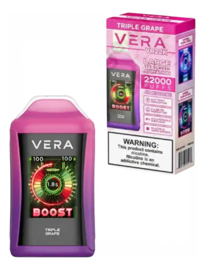 Vape Vaporizador Desechable Vera 22k Puffs El vaporizador desechable Vera 22.000 Puff es un dispositivo de alta capacidad que se distingue por su enfoque en la durabilidad, el sabor y una experiencia de usuario moderna y práctica. Es una excelente opción para quienes buscan un vapeador de larga duración con funciones avanzadas. Rendimiento y Capacidad: Hasta 22.000 caladas: Con una capacidad masiva, este dispositivo está diseñado para durar. No tendrás que preocuparte por reemplazarlo con frecuencia.