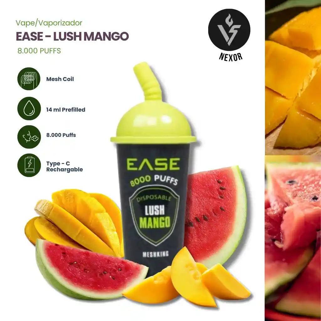 Un mango maduro, jugoso e intenso que llena cada calada con un sabor tropical profundo. Dulce, exótico y absolutamente envolvente, ideal para quienes aman los sabores frutales potentes. Sensación: como estar bajo el sol en una isla, con brisa cálida y cero preocupaciones… puro mood vacaciones. Características: • 8000 puffs • 50mg • Mesh coil