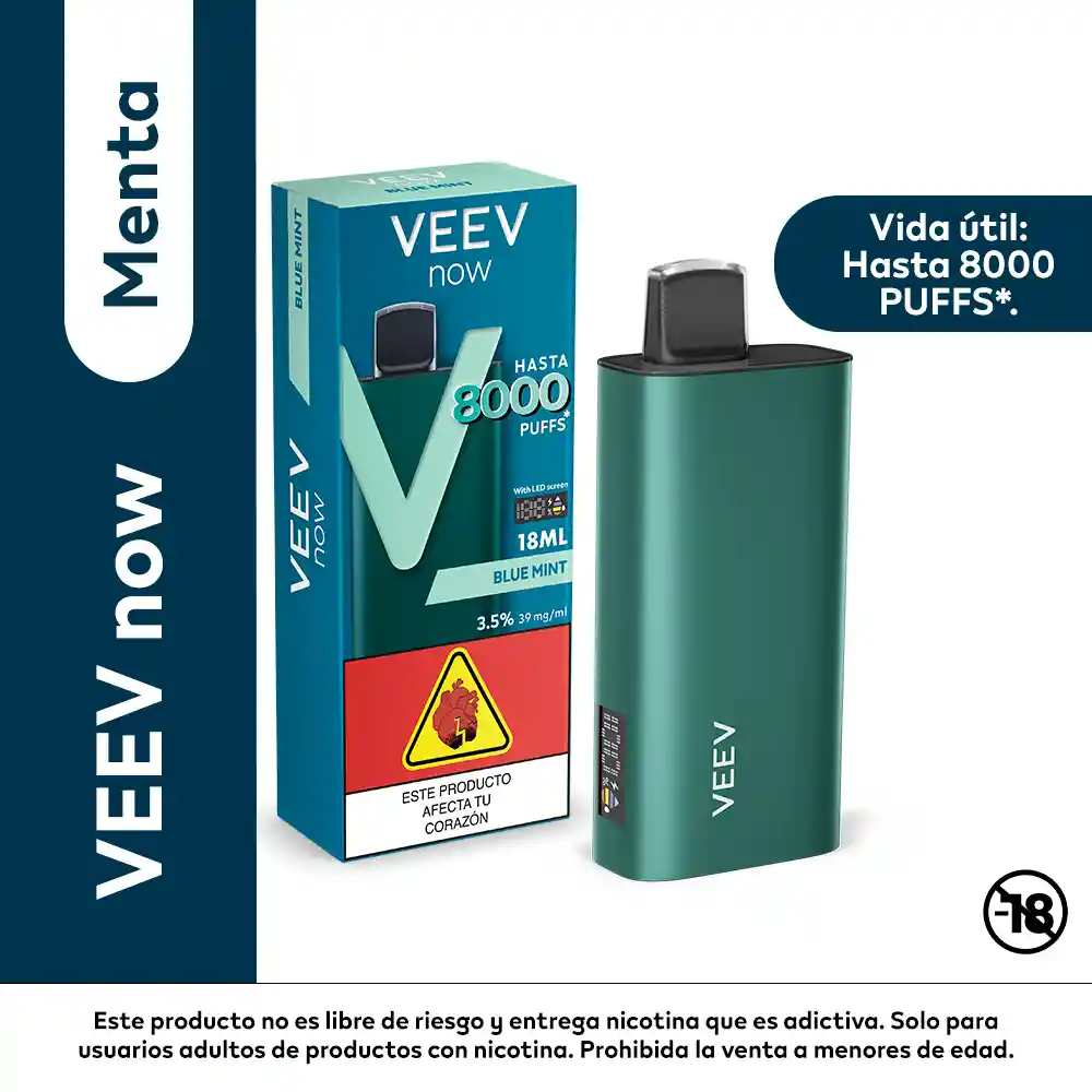 Lleva el vapeo a otro nivel con el nuevo VEEV now Blue Mint. Un vapeador desechable de 18ml con 8000 puffs