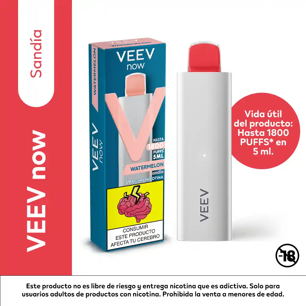 Lleva el vapeo a otro nivel con el nuevo VEEV now Sandía. Un vapeador desechable de 5ml con 1800 puffs