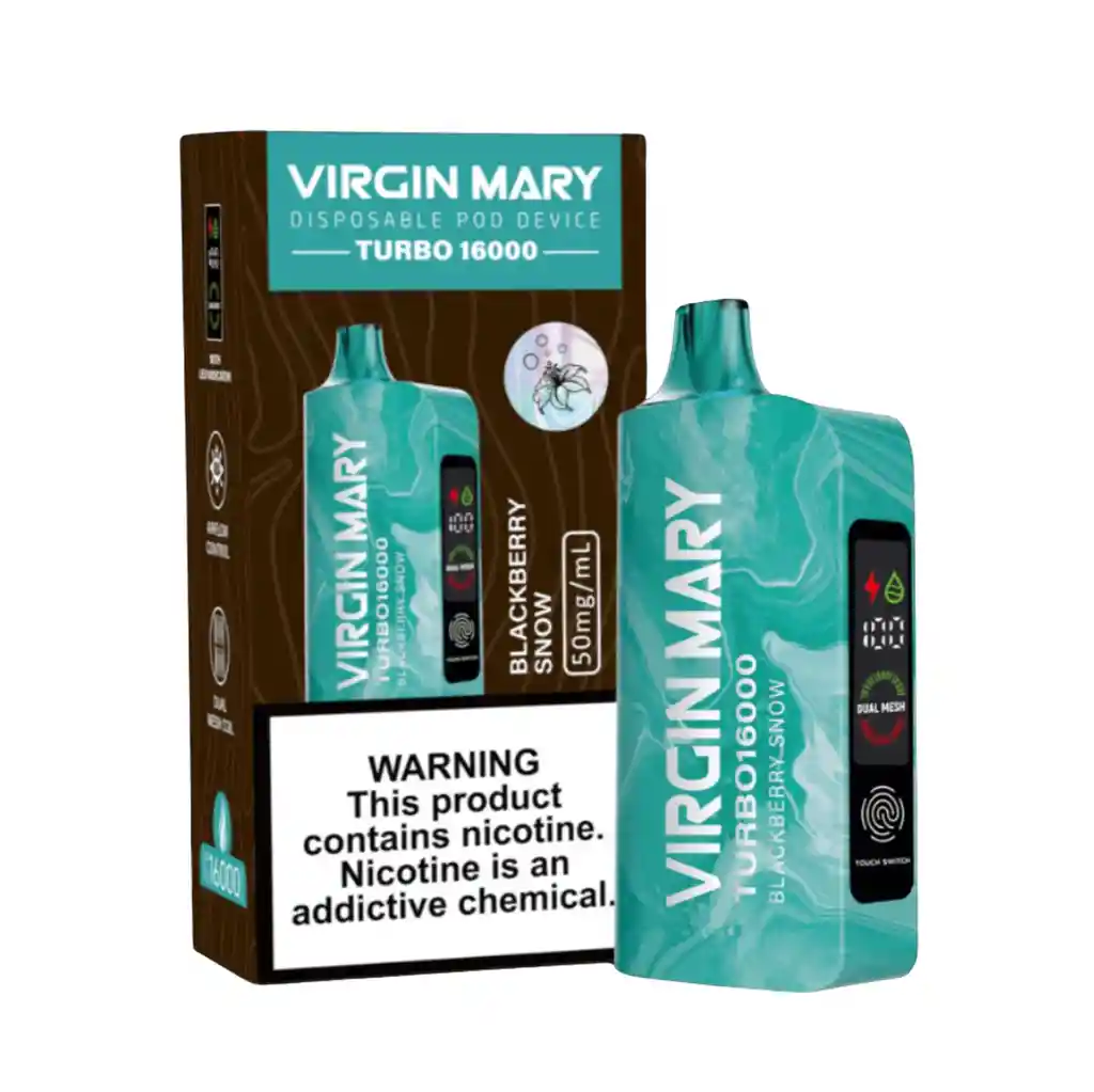 Vape Virgin Mary 16.000 Puffs Recargable Disfruta de una experiencia intensa y duradera con este dispositivo desechable de alta capacidad. Recarga su batería para aprovechar al máximo sus 16.000 puffs llenos de sabor. ¡Fácil de usar, sin recargas de esencia!