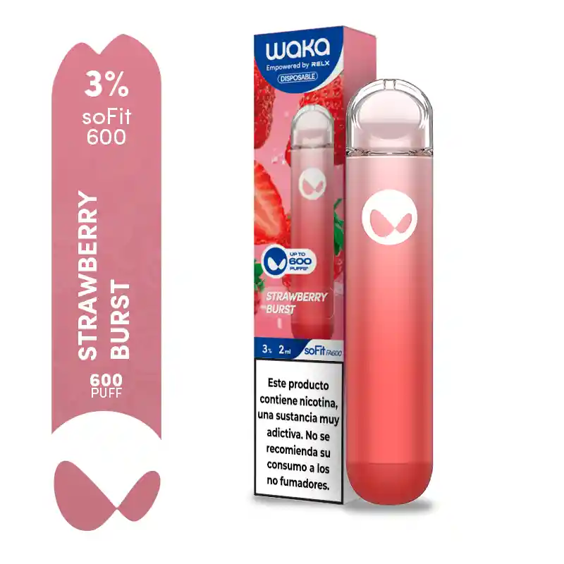 Vaporizador waka de 600 caladas sabor strawberry burst Vapea productos de calidad. Prohibida la venta a menores de edad. Producto nocivo para la salud que contiene nicotina, sustancia altamente adictiva. Antes de consumir consulte las indicaciones y contraindicaciones de uso