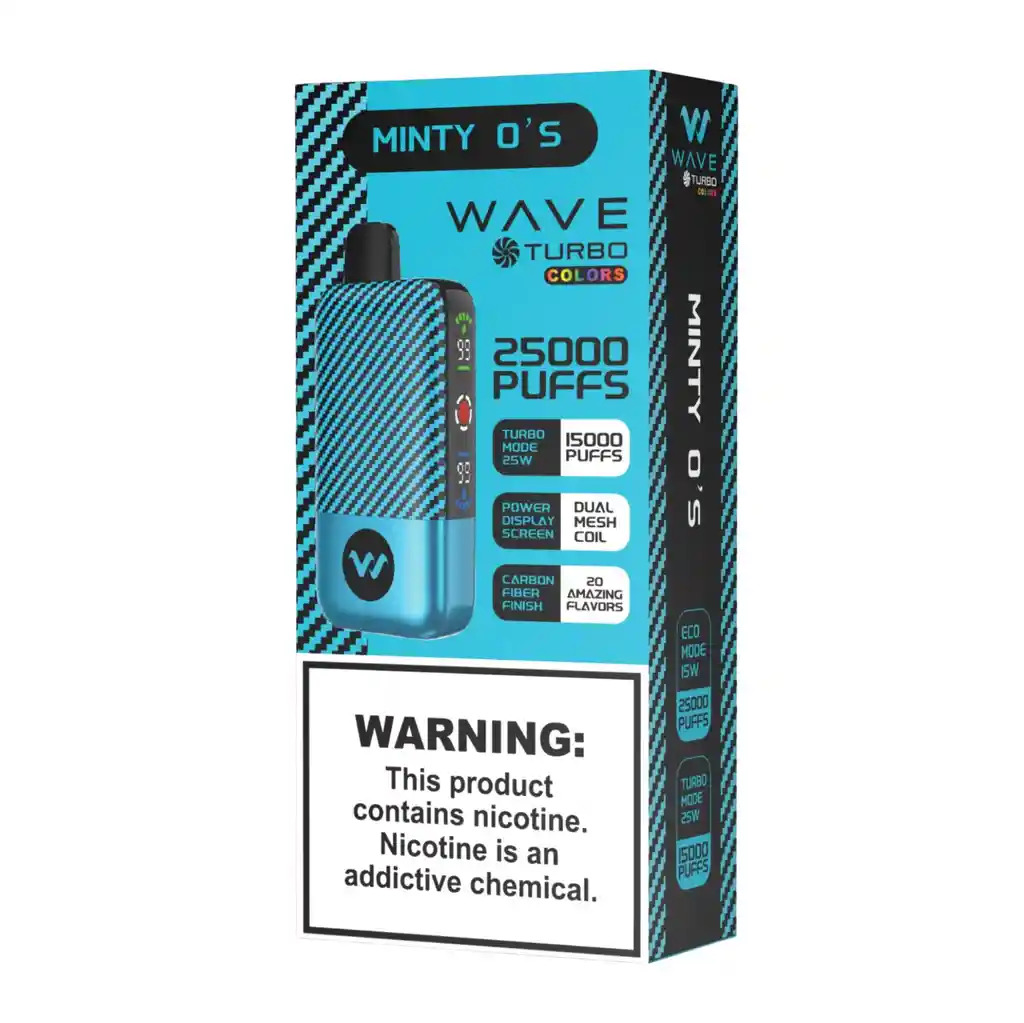 Minty O's - Dos modos, una experiencia única: ECO Mode para 25,000 puffs y TURBO Mode para 15,000 puffs. Recargable USB, Pantalla de visualizacion de liquido y bateria. Nicotina 5%