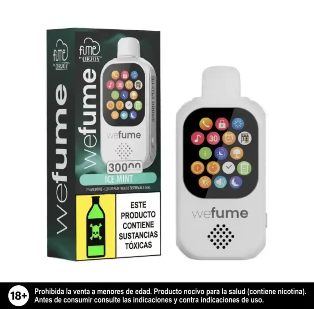 MENTA. WeFume, la cúspide de la innovación en vapeo diseñada para el usuario moderno. Con una impresionante capacidad de 30,000 caladas, este vape inteligente está diseñado para ofrecer una experiencia superior y duradera. WeFume se destaca por sus configuraciones personalizables, lo que te permite ajustar el vapeo exactamente a tus preferencias. Ya sea que prefieras una calada más fuerte o un tiraje más suave, WeFume se adapta para satisfacer tus necesidades. Mantente conectado sin esfuerzo gracias a su conectividad Bluetooth y sus 16 aplicaciones diferentes. Sincroniza tu WeFume con tu smartphone para hacer llamadas, reproducir música y usar asistentes de voz como Siri o Google Assistant, todo directamente desde tu vape. ¡Y eso no es todo! WeFume también es una herramienta versátil, con un reloj y linterna incorporados, lo que lo convierte en un gadget práctico para tu día a día. Da el paso al futuro del vapeo con WeFume.