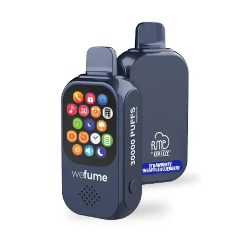 SABOR FRESA PINA Y ARANDANO. WeFume, la cúspide de la innovación en vapeo diseñada para el usuario moderno. Con una impresionante capacidad de 30,000 caladas, este vape inteligente está diseñado para ofrecer una experiencia superior y duradera. WeFume se destaca por sus configuraciones personalizables, lo que te permite ajustar el vapeo exactamente a tus preferencias. Ya sea que prefieras una calada más fuerte o un tiraje más suave, WeFume se adapta para satisfacer tus necesidades. Mantente conectado sin esfuerzo gracias a su conectividad Bluetooth y sus 16 aplicaciones diferentes. Sincroniza tu WeFume con tu smartphone para hacer llamadas, reproducir música y usar asistentes de voz como Siri o Google Assistant, todo directamente desde tu vape. ¡Y eso no es todo! WeFume también es una herramienta versátil, con un reloj y linterna incorporados, lo que lo convierte en un gadget práctico para tu día a día. Da el paso al futuro del vapeo con WeFume.