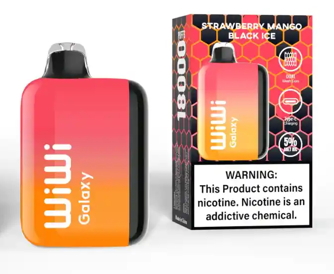 Vape Wiwi Galaxy 18.000 Puffs 5% nicotina 18mL , 2 modos de uso, modo Pulse para 18.000 puffs y modo normal para 9.000 puffs. Cuenta con medidor de esencia y de bateria. Puerto de carga USB-C.