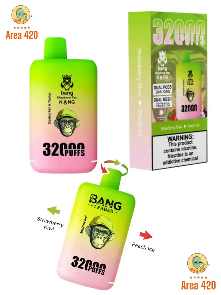 Descubre la nueva generación de vapeadores BANG de 32.000 puffs con tecnología de doble sabor. Este dispositivo te permite disfrutar dos sabores en un solo vape, y cambiar entre ellos fácilmente girandol a boquilla.