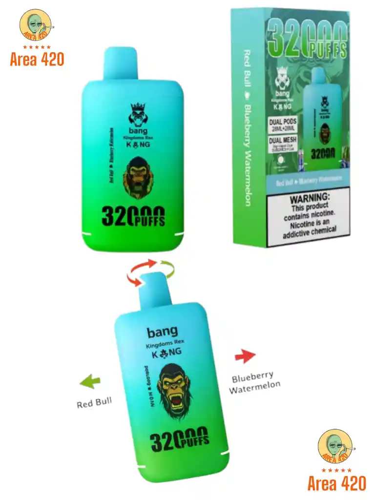 Descubre la nueva generación de vapeadores BANG de 32.000 puffs con tecnología de doble sabor. Este dispositivo te permite disfrutar dos sabores en un solo vape, y cambiar entre ellos fácilmente girandol a boquilla.