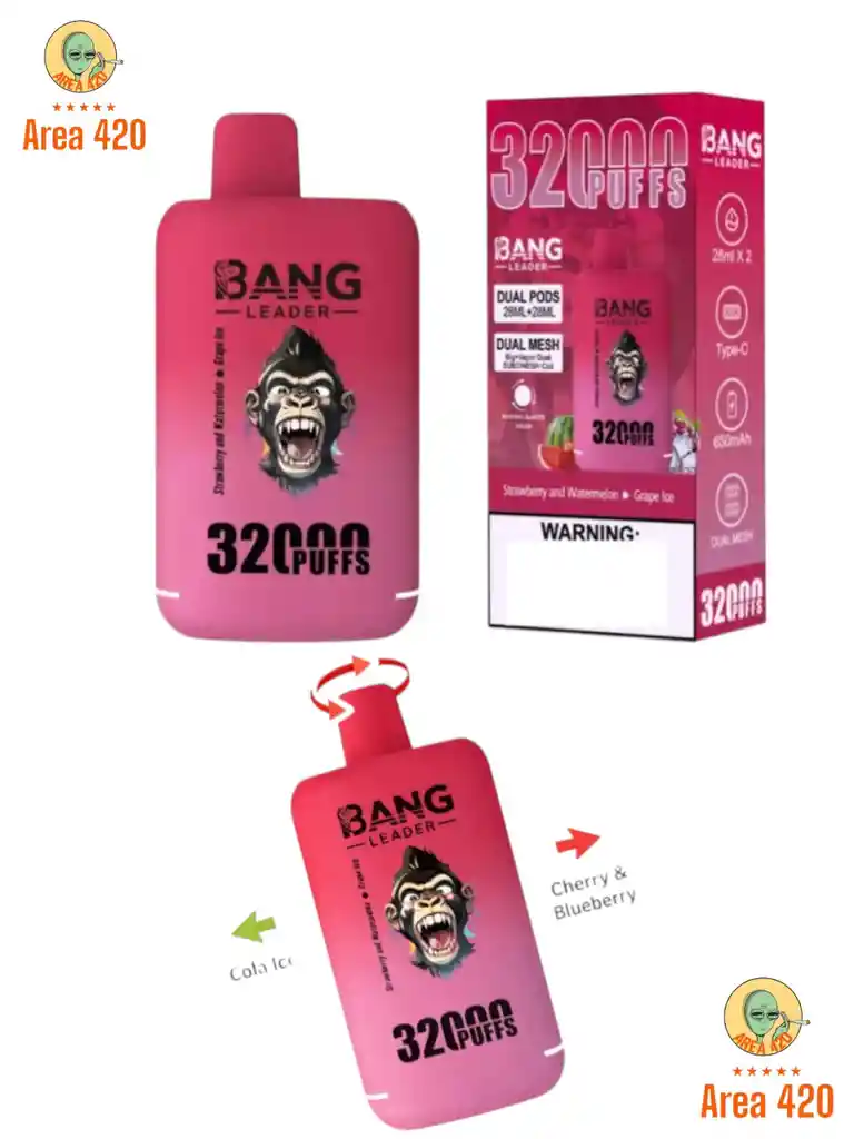 Descubre la nueva generación de vapeadores BANG de 32.000 puffs con tecnología de doble sabor. Este dispositivo te permite disfrutar dos sabores en un solo vape, y cambiar entre ellos fácilmente girandol a boquilla.