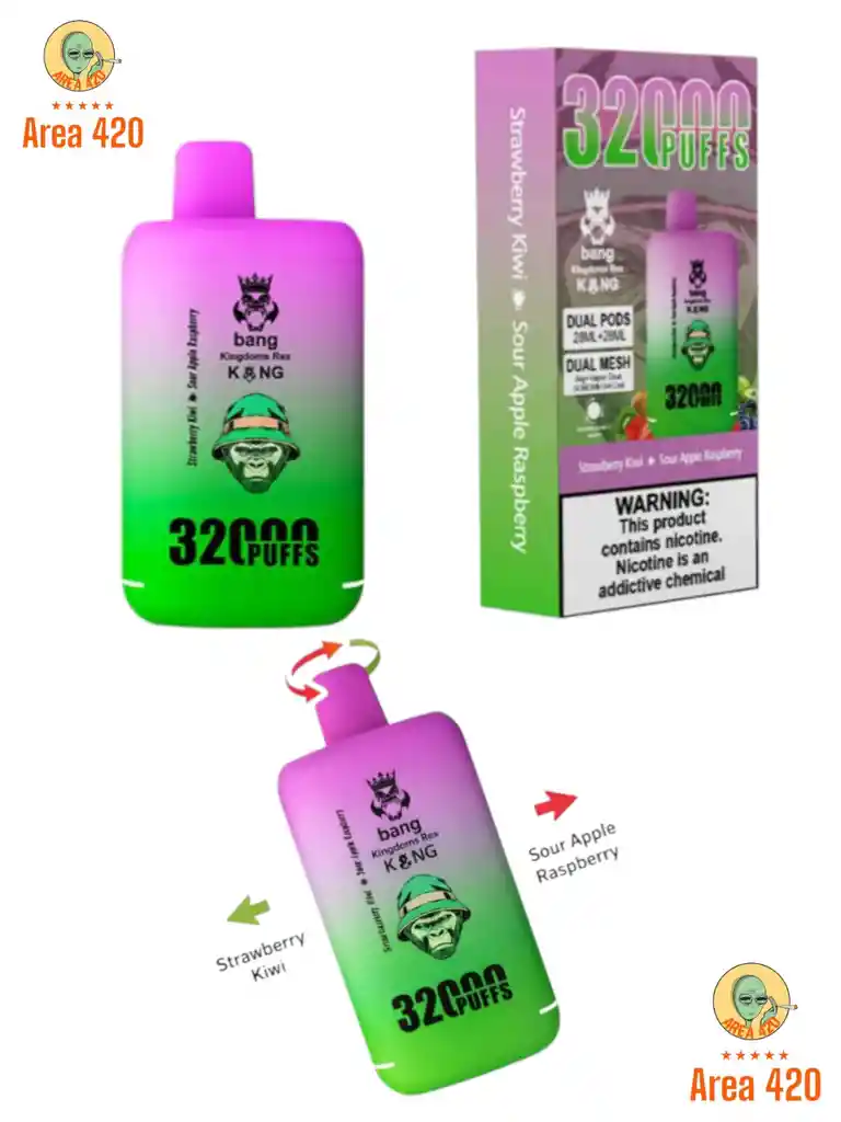 Descubre la nueva generación de vapeadores BANG de 32.000 puffs con tecnología de doble sabor. Este dispositivo te permite disfrutar dos sabores en un solo vape, y cambiar entre ellos fácilmente girandol a boquilla.