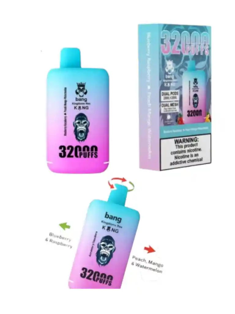 Descubre la nueva generación de vapeadores BANG de 32.000 puffs con tecnología de doble sabor. Este dispositivo te permite disfrutar dos sabores en un solo vape, y cambiar entre ellos fácilmente girandol a boquilla.
