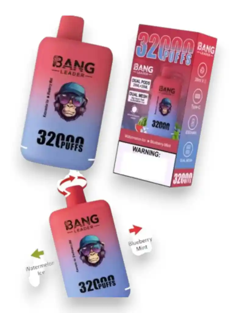 Descubre la nueva generación de vapeadores BANG de 32.000 puffs con tecnología de doble sabor. Este dispositivo te permite disfrutar dos sabores en un solo vape, y cambiar entre ellos fácilmente girandol a boquilla.