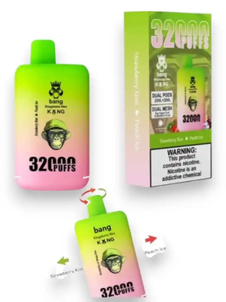 Descubre la nueva generación de vapeadores BANG de 32.000 puffs con tecnología de doble sabor. Este dispositivo te permite disfrutar dos sabores en un solo vape, y cambiar entre ellos fácilmente girandol a boquilla.