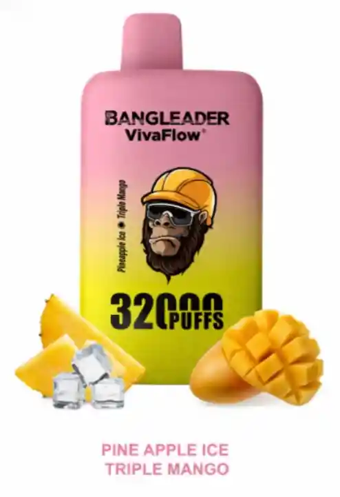 Bang Leader 32000 Bocanadas – Sistema Dual Flavor Dispositivo desechable de alta capacidad diseñado para ofrecer dos perfiles de sabor tropical intensos dentro de la línea BANG Leader 32000 Puffs. Combina notas frutales dulces con un carácter refrescante, pensado para quienes buscan alternar entre una experiencia cítrica helada y otra más densa y tropical. ✨ Perfil de Sabor Notas principales: Pod 1. Piña Helada. Pod 2. Triple Mango. Contrastes: Pod 1. Piña Helada: piña madura con un toque frío que resalta su acidez natural. Pod 2. Triple Mango: mezcla de mango dulce, jugoso y ligeramente cremoso que intensifica el carácter tropical. Experiencia sensorial: El dispositivo permite alternar entre dos perfiles claramente distintos: una sensación refrescante y ligera con la piña helada, y un perfil tropical más intenso con el triple mango. El resultado es una experiencia variable que evita la monotonía del sabor único. Ideal para: Personas que prefieren sabores frutales tropicales. Quienes buscan alternar entre un perfil frío y uno dulce en un mismo dispositivo. Usuarios que valoran gran capacidad de puffs y autonomía prolongada. 📋 Especificaciones Técnicas: Hasta 32.000 inhalaciones Nicotine: 5 % Sistema Dual Mesh (doble bobina) Dispositivo desechable Batería: 650 mAh Rotación de sabores integrada