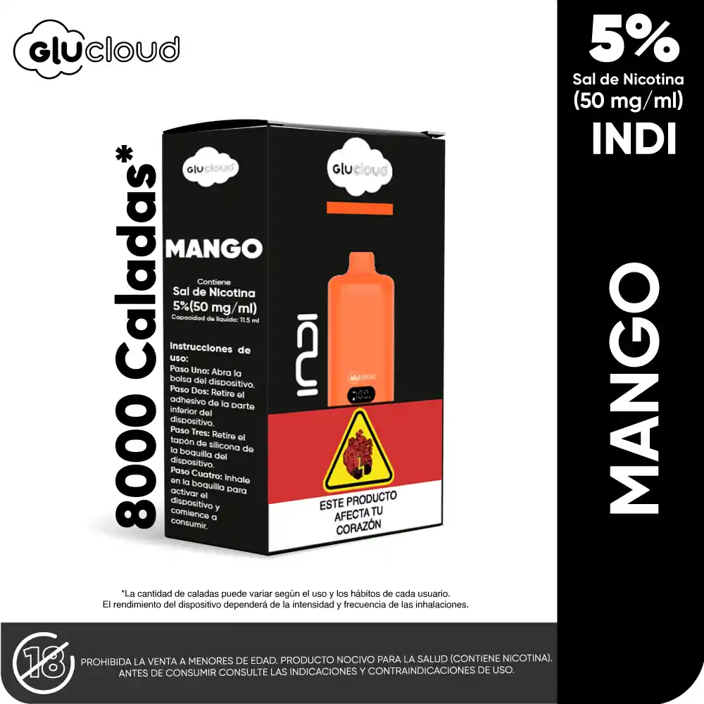 Vapeador CAPSULA Glucloud 4000 Puffs Mango SOLO CAPSULA, NO INCLUYE BATERIA