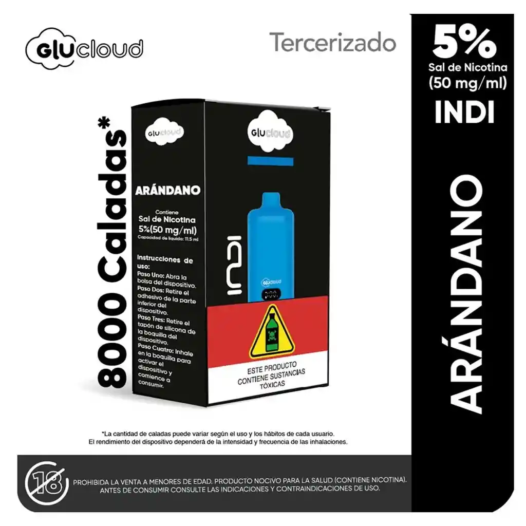 Vapeador Glucloud Arandano Indi 5% X4000 Puffs SOLO CAPSULA, NO INCLUYE BATERIA