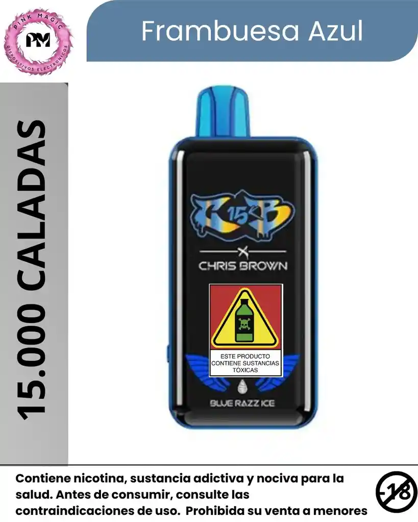 Chris Brown- 15.000 Puffs Es un vape desechable de alta gama que fusiona innovación con arte. Inspirado en el estilo de Chris Brown, este dispositivo no solo destaca por su rendimiento, sino también por su estética única. Características destacadas: -Carga inalámbrica para mayor comodidad. -Pantalla inteligente que muestra nivel de batería, animaciones y estado del dispositivo. -Batería integrada con lectura precisa de carga. -Diseño artístico y elegante, ideal para quienes buscan un vape premium. No es solo un vapeador: es una experiencia completa de estilo, tecnología y personalidad.