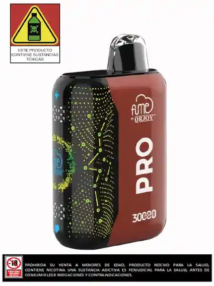 Fume Pro 30K Puffs Para los consumidores que exigen duración, sabor y facilidad sin complicaciones. Hasta 30.000 caladas para una autonomía inigualable. Equipado con batería recargable USB-C que permite mantener el dispositivo listo para usar sin recargas de líquido ni mantenimiento. Incluye 18 mL de sales de nicotina, con aproximadamente 4,5 % (≈ 45 mg/mL) de nicotina pre-llenadas en el dispositivo. Tecnología de bobina de malla dual (~0,8 Ω) que asegura sabor puro y vapor denso sin quemados. Diseño “plug-and-play”: listo para usar, sin reemplazo de partes, sin rellenar. Ideal para consumo fácil y directo. Disponibles en múltiples sabores premium: frutas, mentolados, combinados, para satisfacer diversos perfiles de usuario. ESTE PRODUCTO CONTIENE NICOTINA DE 5%, UNA SUSTANCIA ADICTIVA, PERJUDICIAL PARA LA SALUD, PROHIBIDA SU VENTA A MENORES DE EDAD, ANTES DE CONSUMIR EL PRODUCTO LEER INDICACIONES Y CONTRAINDICACIONES