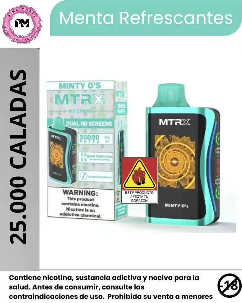 Vaper Matrix 25.000 Puffs Menta fresca El MTRX es un vapeador recargable de última tecnología, diseñado para ofrecer hasta 25,000 inhalaciones con una carga. Con un nivel de nicotina del 5%, su potente batería y sistema de interfaz digital, brinda una experiencia de vapeo óptima.