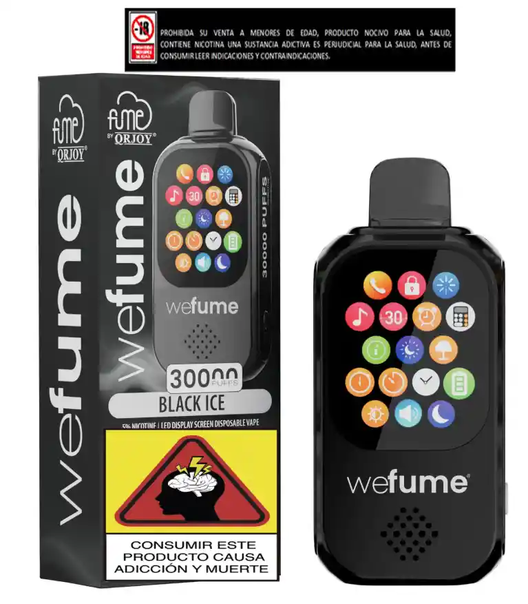 "¡Bienvenido al futuro del vapeo! Con el nuevo we fume de 30,000 vapeadas, tu experiencia va más allá del sabor. Equipado con reproductor de música, calculadora, despertador, ¡y hasta la capacidad de contestar llamadas! Es mucho más que un vapeador: es tu compañero todo-en-uno. ¿Estás listo para revolucionar la manera en que disfrutas cada calada? we fume, mucho más que vapor." Este producto contiene nicotina de 5mg, es una sustancia adictiva, perjudicial para la salud, prohibida su venta a menores de edad, antes de consumir leer indicaciones y contraindicaciones.