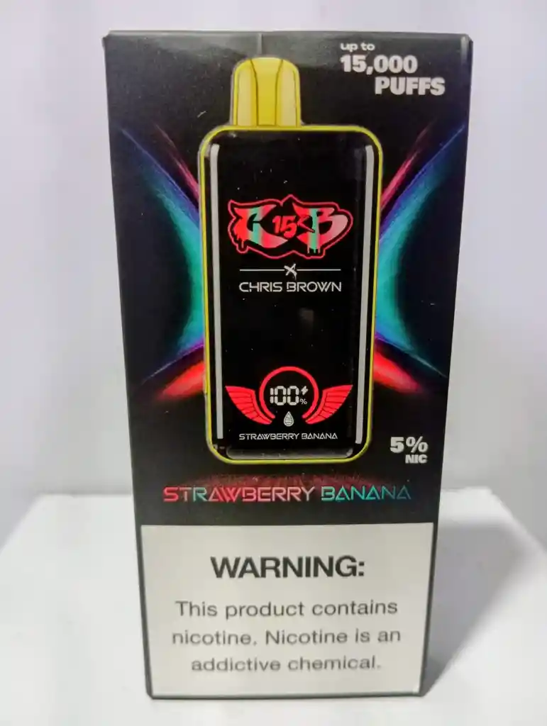Vaper Chris Brown 15000 Usos Sabor Fresa Banana 5% de Nicotina *Producto Sellado *Los Productos de Vapeo No tienen Grantía