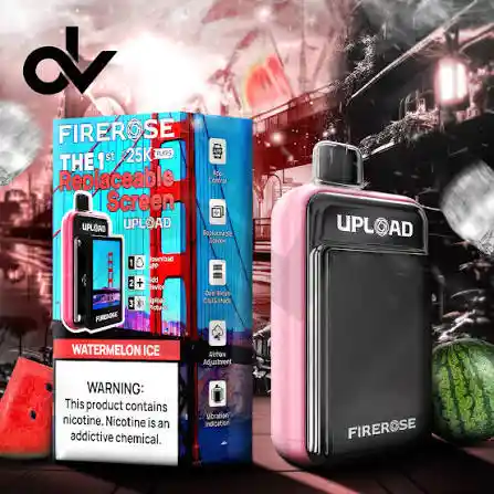 El Firerose Upload 25000 es un vape desechable de alta tecnología que destaca por ser el primero con una pantalla intercambiable y personalizable. Características Principales Capacidad Gigante: Ofrece hasta 25,000 caladas con 20ml de e-líquido y 5% de nicotina. Pantalla Personalizable: Puedes subir hasta 10 fotos propias como fondo de pantalla a través de la aplicación Arctic Dolphin. Modos de Vapeo: Cuenta con modo Normal (calada suave) y modo Turbo (mayor producción de vapor con vibración háptica al cambiar). Tecnología: Utiliza bobinas de malla dual para un sabor intenso y flujo de aire ajustable. Batería: 660mAh recargable mediante USB-C.