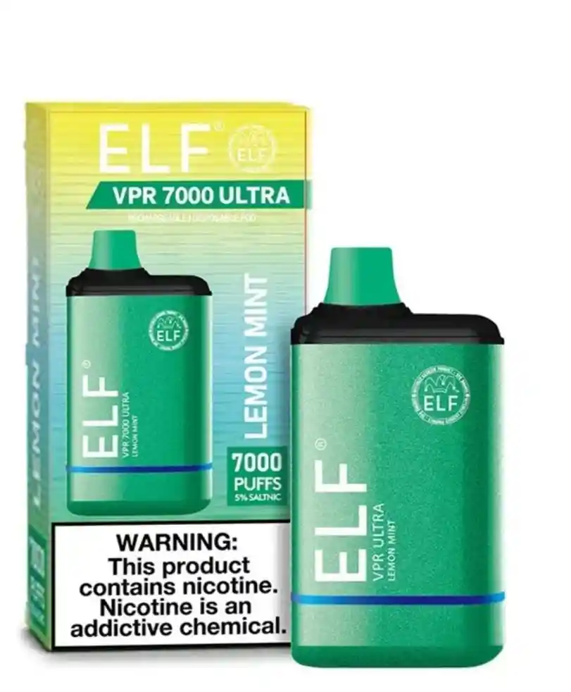 Se trata del ELF VPR 7000 Ultra con sabor a Lemon Mint. Es un vaporizador desechable que ofrece hasta 7000 caladas Características principales: Sabor: Lemon Mint (limón y menta). Caladas: Ofrece hasta 7000 caladas. Líquido: Contiene una capacidad de 11ml de e-líquido. Batería: Cuenta con una batería recargable de 700mAh, lo que permite disfrutar de una experiencia de vapeo prolongada. Activación: Los dispositivos Elf Bar se activan al inhalar por la boquilla.