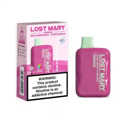 El Lost Mary OS5000 by ELF Bar es un vape desechable recargable de 5000 puffs que simplemente te asombrará. En su estructura contiene 13.0 ml de Sal de Nicotina al 5% (50 mg) que generan hasta 5000 fumadas. Una de sus características principales es que integra un indicador LED de batería en la parte superior de su estructura que permite comprobar el estado de carga de la batería mientras los usas. El led verde indica batería alta (100% – 70%), el led azul indica batería media (69% – 29%) y el led rojo indica batería baja (porcentaje menor al 29%) muestran la cantidad de carga que queda en la batería de 650 mAh. El Lost Mary OS5000 tiene una producción de alrededor de 5000 puffs, con un diseño que permite un mejor agarre, gracias a su textura rugosa, contiene 13ml de Sal de Nicotina al 5% (50mg) y está equipado con una resistencia de malla que ayuda a generar un sabor más puro y una producción de vapor excelente. Hay mucho que decir del Lost Mary OS5000, pero lo más importante es su sabor y las nubes de vapor combinados con elementos de rendimiento y diseño que harán de tu experiencia de vapeo algo fuera de este mundo. El Lost Mary OS5000 integra una nueva tecnología que ayuda a identificar el consumo de energía con un led en la parte superior que alumbra en verde si tienes de un 70% – 100%, el color azul indica un rendimiento de un 29% – 69% y cuando se torna rojo la batería tiene un porcentaje menor al 29%; cuenta con una entrada USB tipo C (No incluye el cable) y cada que se esté agotando, simplemente conéctalo y tu dispositivo funcionará como al sacarlo de la caja por primera vez.
