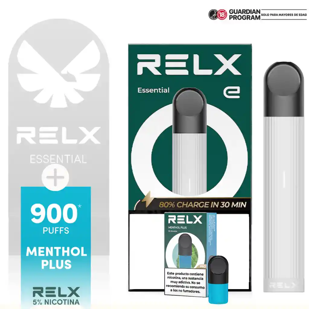Contiene: 1x Dispositivo Relx Essential Blanco + 1x Pod Relx Menthol Plus 5% Nicotina