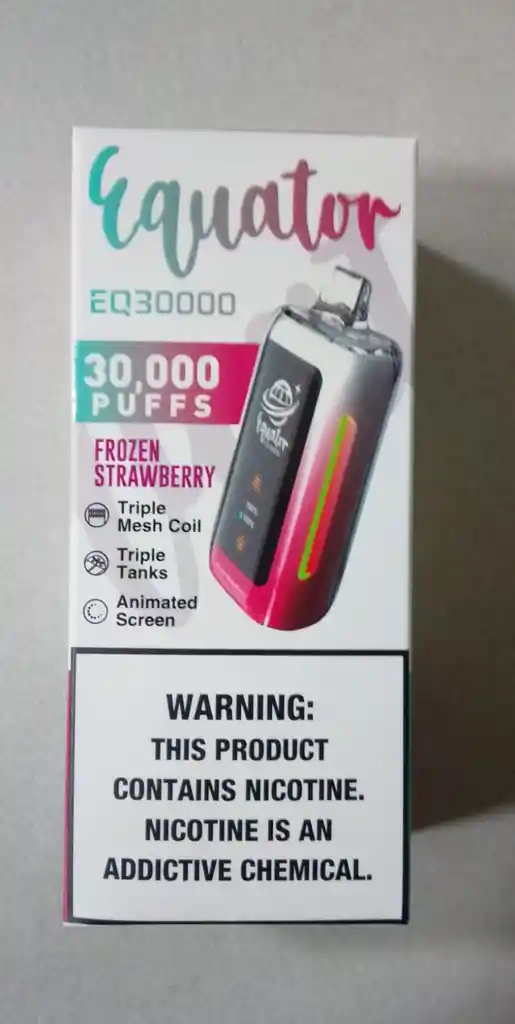 Vape de alto rendimiento diseñado para larga duración y sabor intenso. ✨ Características: ✔ Hasta 30.000 puffs ✔ Sabor Frozen Strawberry (Fresa Helada) 🍓❄️ ✔ Triple Mesh Coil ✔ Triple tanque ✔ Pantalla animada ✔ Vapor potente y constante 📦 Producto nuevo