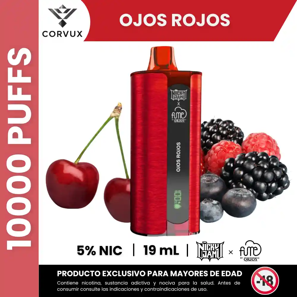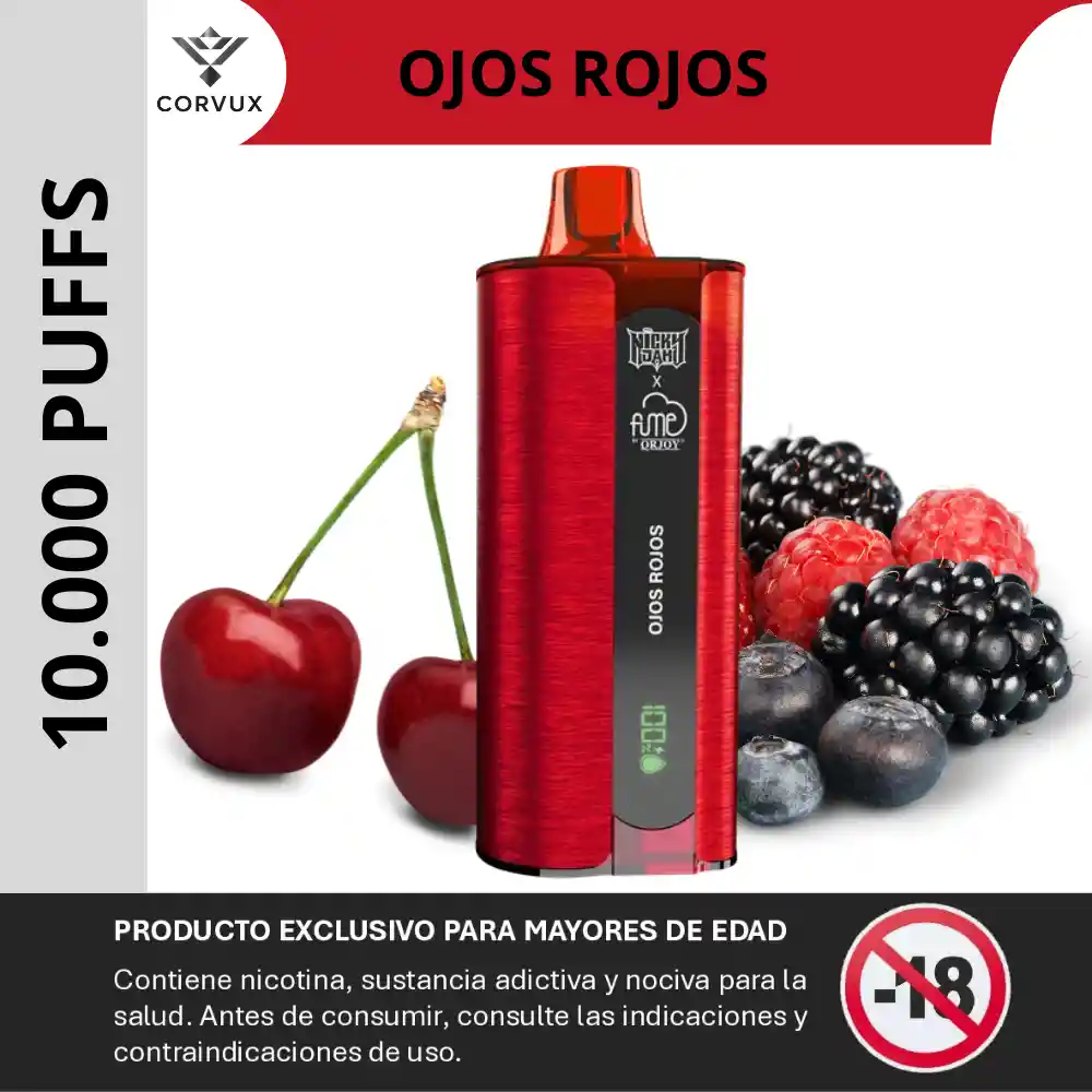 PROHIBIDA LA VENTA A MENORES DE EDAD. PRODUCTO EXCLUSIVO PARA MAYORES DE EDAD, CONTIENE NICOTINA, SUSTANCIA ADICTIVA Y NOCIVA PARA LA SALUD. ANTES DE CONSUMIR, CONSULTE LAS INDICACIONES Y CONTRAINDICACIONES DE USO. 🍒🫐❄️ Cereza intensa combinada con bayas maduras, con un toque sutil de frescura que redondea la mezcla frutal-vibrante. ✨ Perfil del sabor ✦ Notas principales: Una base marcada de cereza (cherry) madura junto con un blend de bayas jugosas, ofreciendo dulzor frutal y un perfil vibrante sin complejidad excesiva. ✦ Contrastes: El efecto ice es moderado (en algunos listados no se menciona explícitamente, así que se recomienda confirmarlo), aportando frescura sin convertir la experiencia en algo mentolado agresivo. ✦ Experiencia sensorial: Inhalación con sabor dulce-frutal claro a cereza y bayas exhalación que amplifica el carácter de las bayas con una sensación de frescura ligera que limpia el paladar. El retrogusto es frutal-persistente, ideal para quienes buscan un sabor llamativo pero equilibrado. ✦ Ideal para: Quienes desean una experiencia frutal contundente, que combine la familiaridad de la cereza con el extra de bayas maduras, y un toque de frescura que la hace apta para uso diario. Perfecto para quienes buscan algo diferenciado dentro de la gama frutal-vape. 📋 Especificaciones técnicas ✦ Capacidad de e-líquido: 19 mL (pre-llenado) ✦ Nivel de nicotina: 5 % (≈ 50 mg/mL) — sales de nicotina ✦ Puffs estimados: Hasta ≈ 10 000 puffs ✦ Batería: ~650 mAh recargable vía USB Tipo-C ⚡ ✦ Pantalla LED / Indicadores: Indicador de batería y/o nivel de e-líquido ✦ Resistencia (coil): Malla (mesh coil) para mejor sabor y evaporación uniforme ✦ Activación: Automática por succión (draw-activated) PROHIBIDA LA VENTA A MENORES DE EDAD. PRODUCTO EXCLUSIVO PARA MAYORES DE EDAD, CONTIENE NICOTINA, SUSTANCIA ADICTIVA Y NOCIVA PARA LA SALUD. ANTES DE CONSUMIR, CONSULTE LAS INDICACIONES Y CONTRAINDICACIONES DE USO.