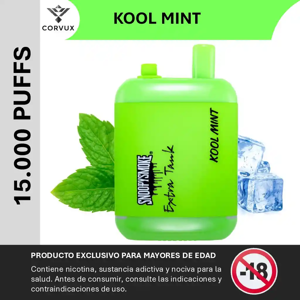 PROHIBIDA LA VENTA A MENORES DE EDAD. PRODUCTO EXCLUSIVO PARA MAYORES DE EDAD, CONTIENE NICOTINA, SUSTANCIA ADICTIVA Y NOCIVA PARA LA SALUD. ANTES DE CONSUMIR, CONSULTE LAS INDICACIONES Y CONTRAINDICACIONES DE USO. Vape Snoopy Smoke - Kool Mint Características: – Capacidad precargada: 18mL x 2. – Capacidad de la batería: 650mAh. – Max Puffs: 15000. – Potencia de nicotina: 5% (50mg). – Funcionamiento: Activado por tiro. – Elemento calefactor: Bobina de malla. – Carga: Puerto Tipo-C.