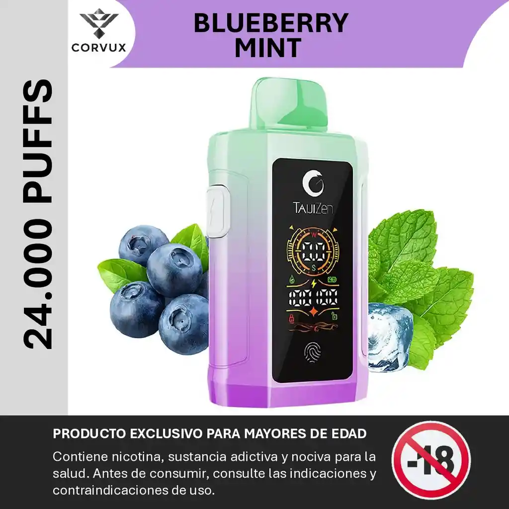PROHIBIDA LA VENTA A MENORES DE EDAD. PRODUCTO EXCLUSIVO PARA MAYORES DE EDAD, CONTIENE NICOTINA, SUSTANCIA ADICTIVA Y NOCIVA PARA LA SALUD. ANTES DE CONSUMIR, CONSULTE LAS INDICACIONES Y CONTRAINDICACIONES DE USO. Vape Taijizen Judo - Blueberry Mint - Respuesta ultra rápida: ¡Ignición en solo 0.0001 segundos! - Potencia personalizable: Modo Boost de 25W (12,000 puffs), Modo Normal de 15W (24,000 puffs). - Bobina de malla dual de 0.5 ohmios. - Batería recargable de 850mAh. - Puerto de carga rápida Tipo-C. - Ajuste de potencia y flujo de aire. - Pantalla táctil de 2.7 pulgadas. - Capacidad de e-líquido: 25 ml . - Soporta e-líquidos con 5% de sales de nicotina.