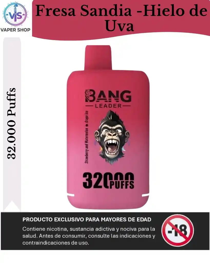 Líder de Bang 32000 32k bocanadas lleva el vapeo desechable al siguiente nivel con su Cámaras duales de e-líquido, lo que permite una doble experiencia de sabor Como nunca antes. Ofreciendo hasta 32000 bocanadasEste dispositivo es perfecto para los vapeadores que buscan disfrute duradero con calados ricos y sabrosos. Equipado con Capacidad de e-líquido de 28 ml + 28 mlEste vaporizador proporciona Una experiencia prolongada e ininterrumpida. El sistema de bobina de malla doble asegura Producción de vapor suave, entregando Sabores intensos y consistentes en cada bocanada. Desarrollado por un Batería recargable de 650 mAh con Carga rápida tipo CEl Bang Leader 32000 Puffs está diseñado para conveniencia y eficienciaDisponible en Concentraciones de nicotina 0%, 2%, 3% y 5%Está dirigido tanto a usuarios ocasionales como a usuarios fuertes de nicotina. Elige entre 12 deliciosos sabores y disfruta el La mejor experiencia de vapeo con el Bang Leader 32000 32k Puffs: ¡donde la innovación se encuentra con la satisfacción! Líder de Bang 32000 32k bocanadas Características: Bocanadas: Hasta 32000 bocanadas Núcleo: MALLA DOBLE E-líquido: 28 ml + 28 ml Nicotina: 0%/2%/3%/5% Batería: 650 mAh Recargable: tipo C Doble sabor 12 sabores disponibles