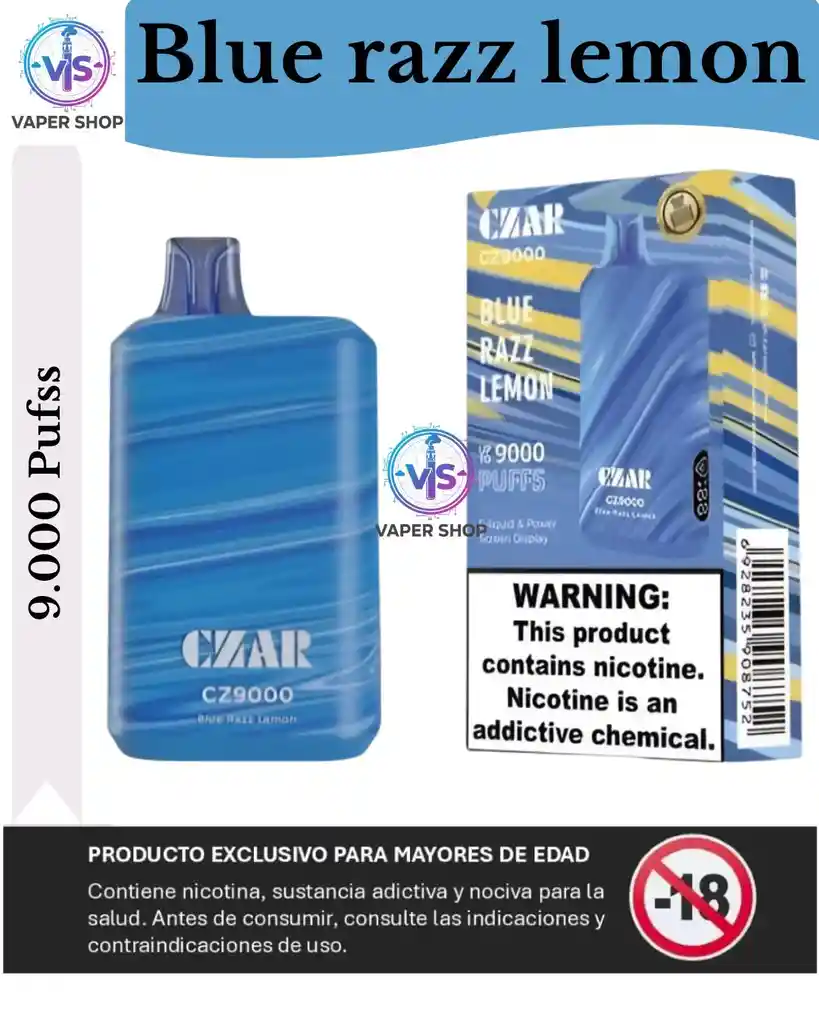 Vaper Vaporizador - Czar Cz 9000 Puffs Blue Razz Lemon