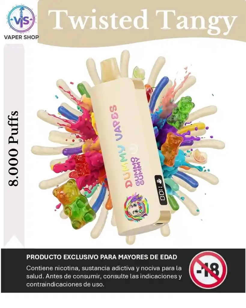 Este es el sabor Dummy Gummy (o Gummy Gummy) de la línea Dummy Vapes, y es uno de los favoritos para quienes buscan una experiencia nostálgica y muy dulce. Aquí tienes lo que hace especial a este modelo: 🍭 Perfil de Sabor: Dummy Gummy Sabor: Está diseñado para imitar exactamente el sabor de las gomitas de ositos de frutas. Es una mezcla de sabores frutales dulces con ese toque característico a caramelo masticable. Experiencia: A diferencia de los otros que hemos visto (como el Black Ice o el Twisted Tangy), este no se enfoca en la frescura del hielo ni en la acidez de los cítricos, sino en un dulzor constante y suave. Es ideal para los que tienen "un paladar dulce". 🛠️ Ficha Técnica del Dispositivo Capacidad: Al igual que los anteriores, ofrece 8,000 Puffs, lo que lo hace muy rentable por su duración. Pantalla Inteligente: Mantiene el panel digital que te indica: Nivel de batería: Para saber cuándo ponerlo a cargar por USB-C. Nivel de líquido: Crucial en este sabor dulce para evitar caladas en seco. Diseño: El color crema/hueso del dispositivo es más sobrio, pero el arte de los "gummy bears" y los colores que lo rodean en la publicidad resaltan su lado divertido. 💡 ¿Para quién es este producto? Es el producto ideal para el cliente que: No le gusta el mentol: Si el "Ice" le parece muy fuerte, este es mucho más amigable. Busca sabores de confitería: Es perfecto para acompañar un café o como postre. Dato extra para tus ventas: Este sabor suele ser el "punto de entrada" para muchos usuarios, ya que es un sabor universalmente reconocido y agradable.